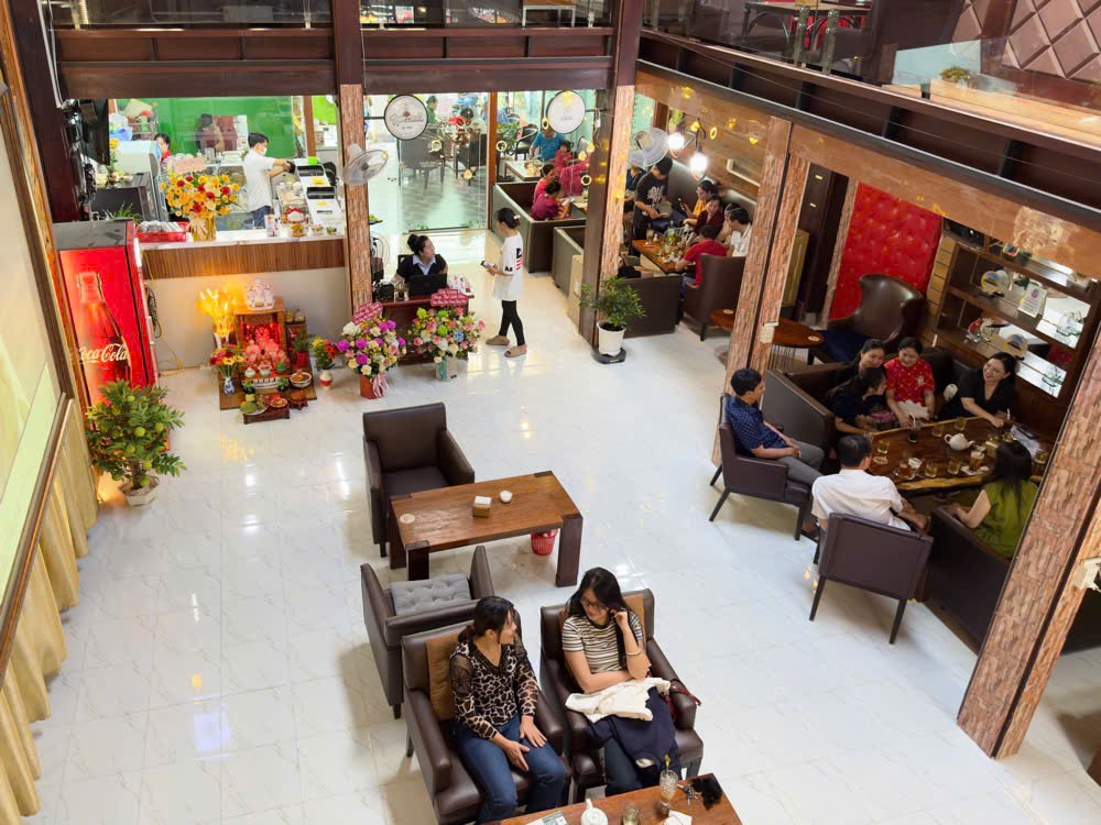 Không gian quán được thiết kế ấm cúng, sử dụng chất liệu gỗ tự nhiên, ánh sáng dịu nhẹ và hương cà phê phảng phất, tạo cảm giác thư giãn, thân thiện ngay từ giây phút đầu tiên.