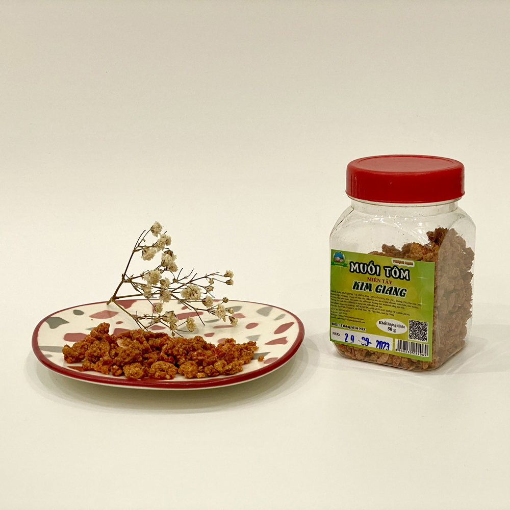 Muối tôm một loại sản phẩm đã quá quen thuộc với tất cả chúng ta thường xuất hiện khi đi kèm với những món trái cây giải nhiệt đã làm bao tín đồ ẩm thực mê mẩn bởi hương vị đi cùng với mùi hương độc đáo sẽ mang lại một cảm giacs mà bạn không thể nào quên được. Muối tôm Miền Tây Kim Giang là đặc sản đậm đà hương vị quê hương đến từ vùng đất An Giang, được sản xuất thủ công tại Cơ sở muối sấy Miền Tây Kim Giang. Sản phẩm được đánh giá đạt chuẩn OCOP 3 sao, đảm bảo chất lượng và vệ sinh an toàn thực phẩm.